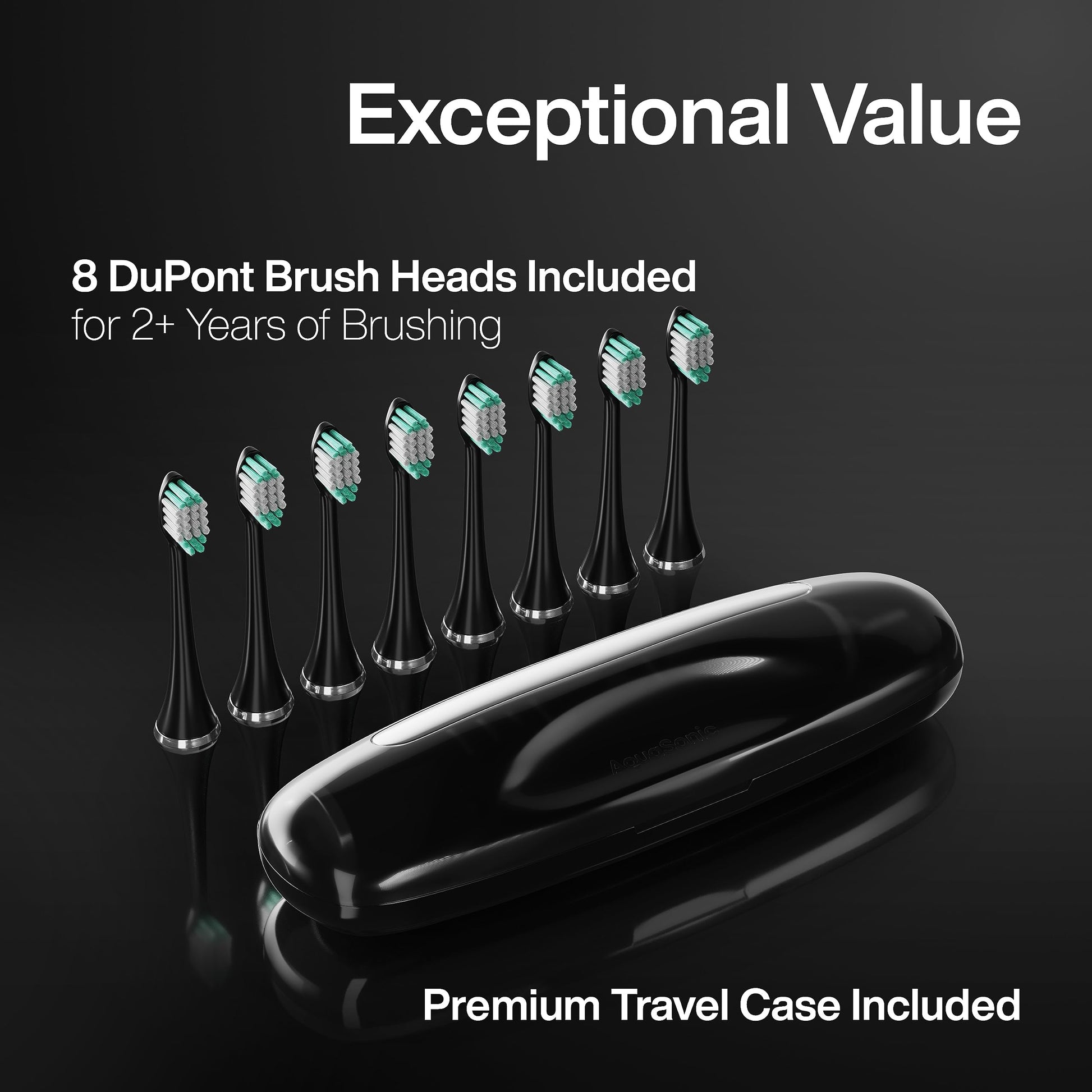 Aquasonic Black Series Electric Toothbrush – Ultra Whitening, 8 Heads, Wireless Charging