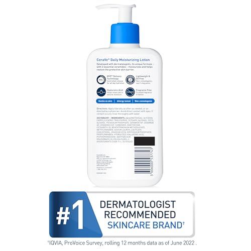 CeraVe Daily Moisturizing Lotion – Hyaluronic Acid & Ceramides, Fragrance-Free, Oil-Free, 19oz for Face & Body