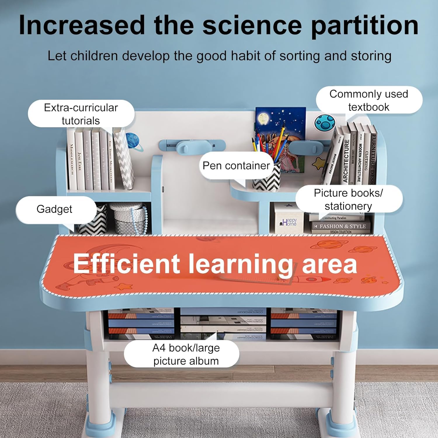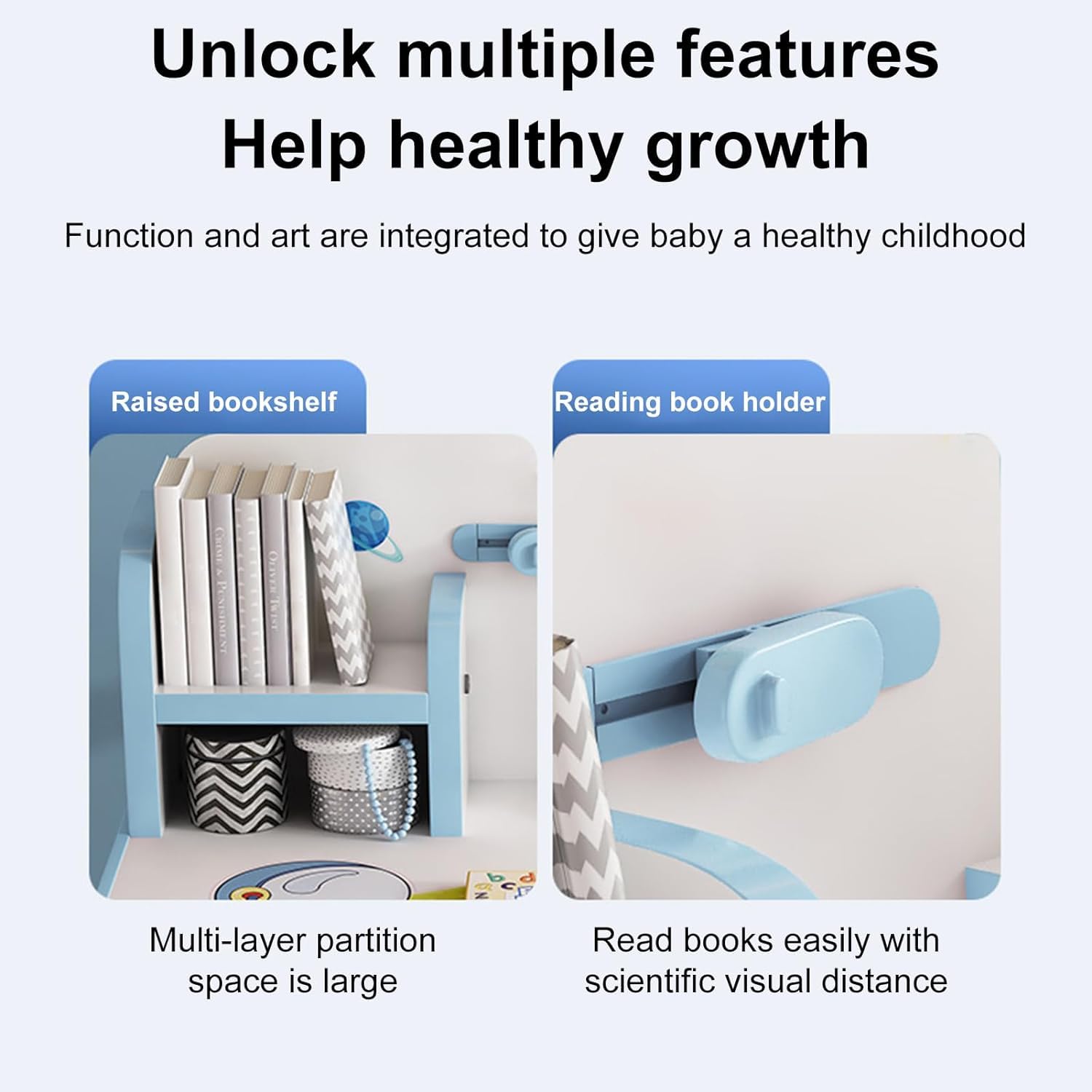 Kids Adjustable Study Desk & Chair Set – Ergonomic Learning Table with Drawer & Golden Distance Design (Blue)