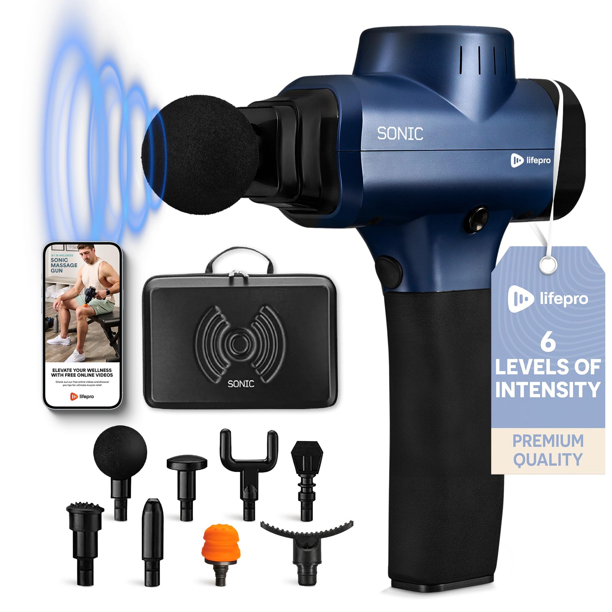 LifePro Deep Tissue Massage Gun – Muscle Massager with 8 Heads, 5 Speeds, Percussion Gun for Athletes